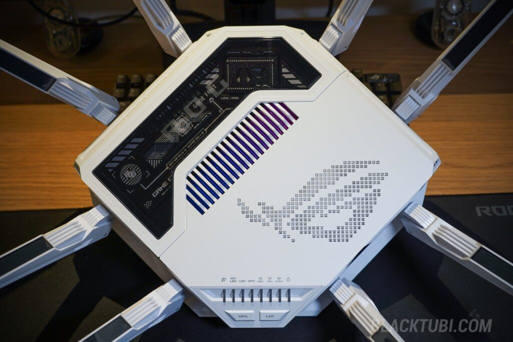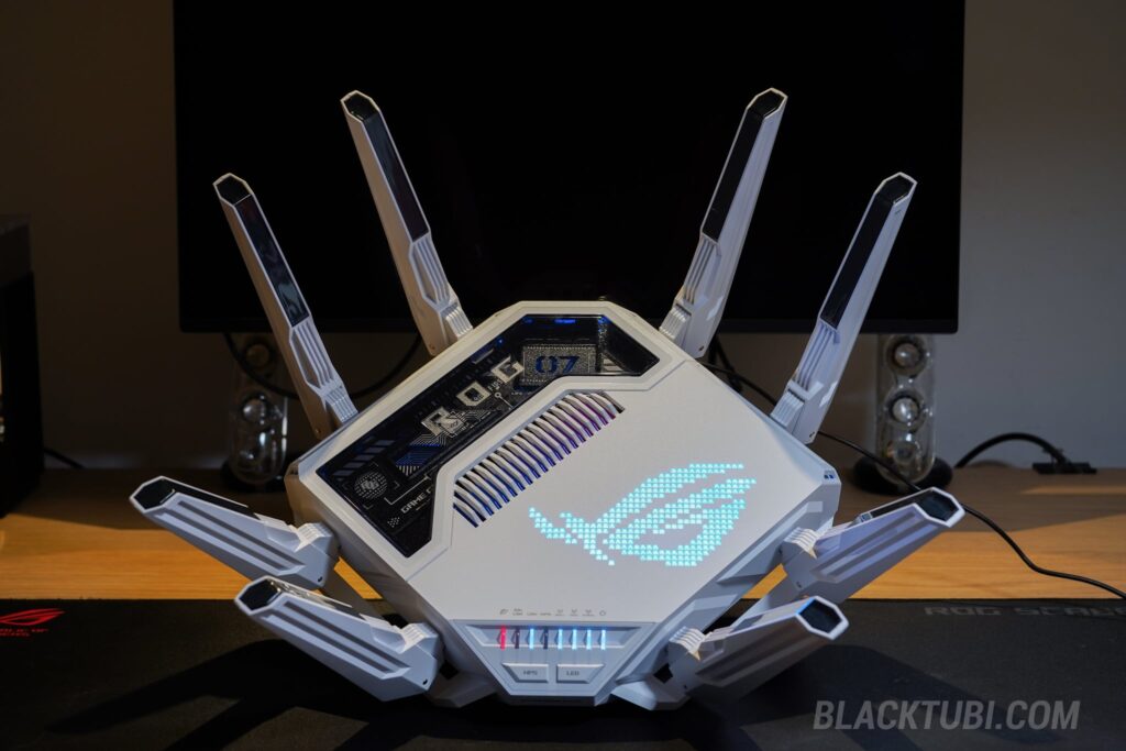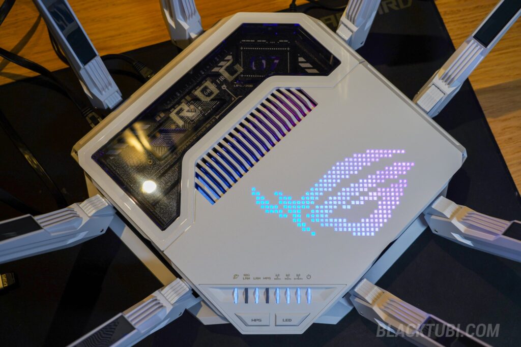 All this tech is housed in a familiar, aggressively “gamer” ROG design with eight massive antennas and a glowing RGB ROG eye logo. (Thankfully, you can customize or disable the light show in the software). If the chassis looks familiar, that’s because it’s physically identical to the older Wi-Fi 7 flagship, the ROG Rapture GT-BE98 but it’s wrapped in a sleek new matte white finish.