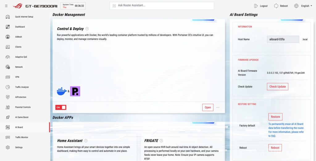 Because built-in AI features are currently a bit sparse, ASUS made the brilliant decision to let users install their own Docker containers on the AI Core via Portainer. Because it has its own isolated processor and RAM, running intensive Docker images won’t parasite any performance from your actual Wi-Fi network. This opens up near-limitless possibilities for homelab enthusiasts.