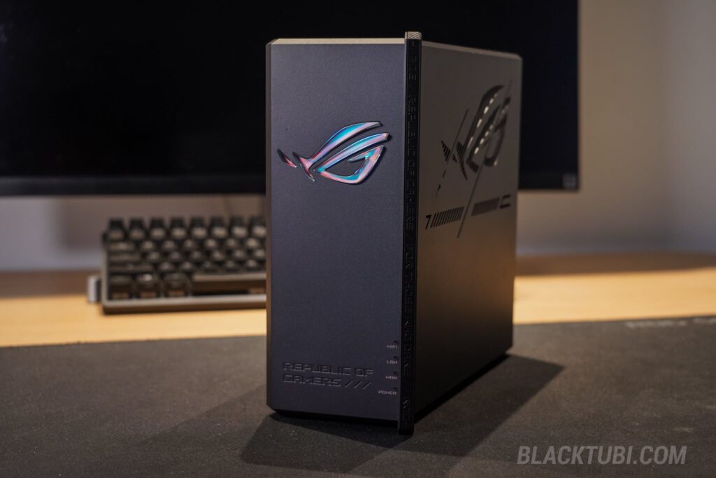 The signature crystal-like ROG logo makes a return here, and it remains my favorite visual feature. The way it reflects the light even when the RGB is off gives it a sophisticated, jewelry-like refraction that sets it apart from the aggressive “gamery” plastic of the previous gaming router. Even when the RGB lighting is on, the light effect is perfect; vibrant without being blinding.