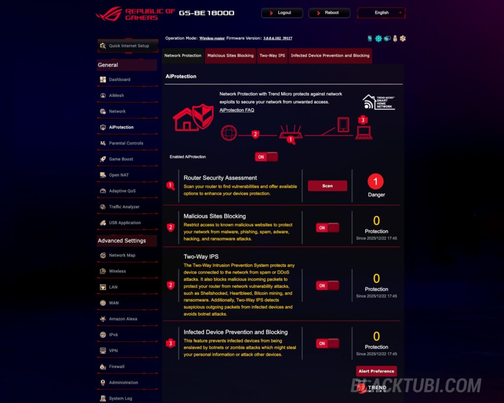 Lastly, security remains a key factor on all ASUS routers. The GS-BE18000 comes with AiProtection Pro included for free for the lifetime of the product with no monthly subscriptions required. It works exceptionally well at identifying and blocking harmful websites, and it can even isolate infected devices to prevent them from compromising your entire network.