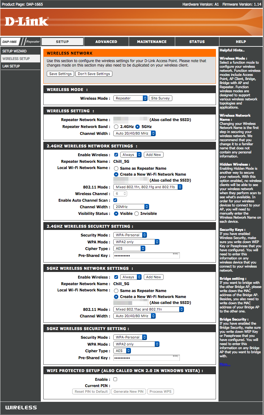 The wireless performance is fine on this repeater. I always recommend people to use a wireless access point instead of a wireless repeater to extend their wireless signal. A properly installed wireless access point provides a much better performance and it is more stable as well. The DAP-1665 can function as both. Stay tuned for my future post on a comparison of wireless repeater and a proper wireless access point setup.