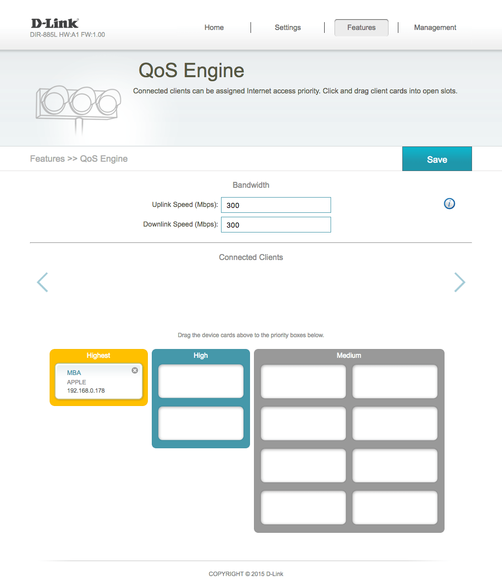 D-Link routers always come with decent firmware and the DIR-885L is no different. The firmware is user-friendly and being basic, it is easy to set up this router as well. The home page allows you to monitor the status of your router with the connected clients and internet status. Diving deeper, the router comes with various value added features. The new drag and drop style iQoS is really easy to use and convenient. You just drag the device you want to limit to the relevant QoS profile and the router will do its job automatically. There is even an OpenVPN server which allows you to setup VPN to your home network remotely and securely.