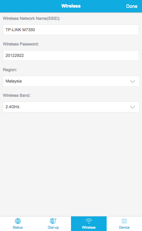 TP-LINK M7350 mobile UI.