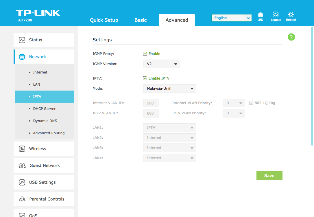 The router is fully compatible with TM Unifi with HyppTV working. In order to make it work, you first have to enable IPTV at Network > IPTV page. The default port for HyppTV should be LAN 1. Next, you navigate to the Internet page, insert your Unifi login credentials and you are good to go. Do note that QoS will not be available when IPTV is enabled, that means you can’t use QoS when you using the router with a Unifi connection due to a software limitation.