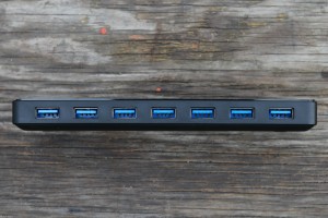 The design is simple and looks good. The top is glossy with 7 USB 3.0 ports in front and 2 charging ports labeled yellow at the side. There’s only a button and the only thing it does is to turn on or turn off the USB hub.