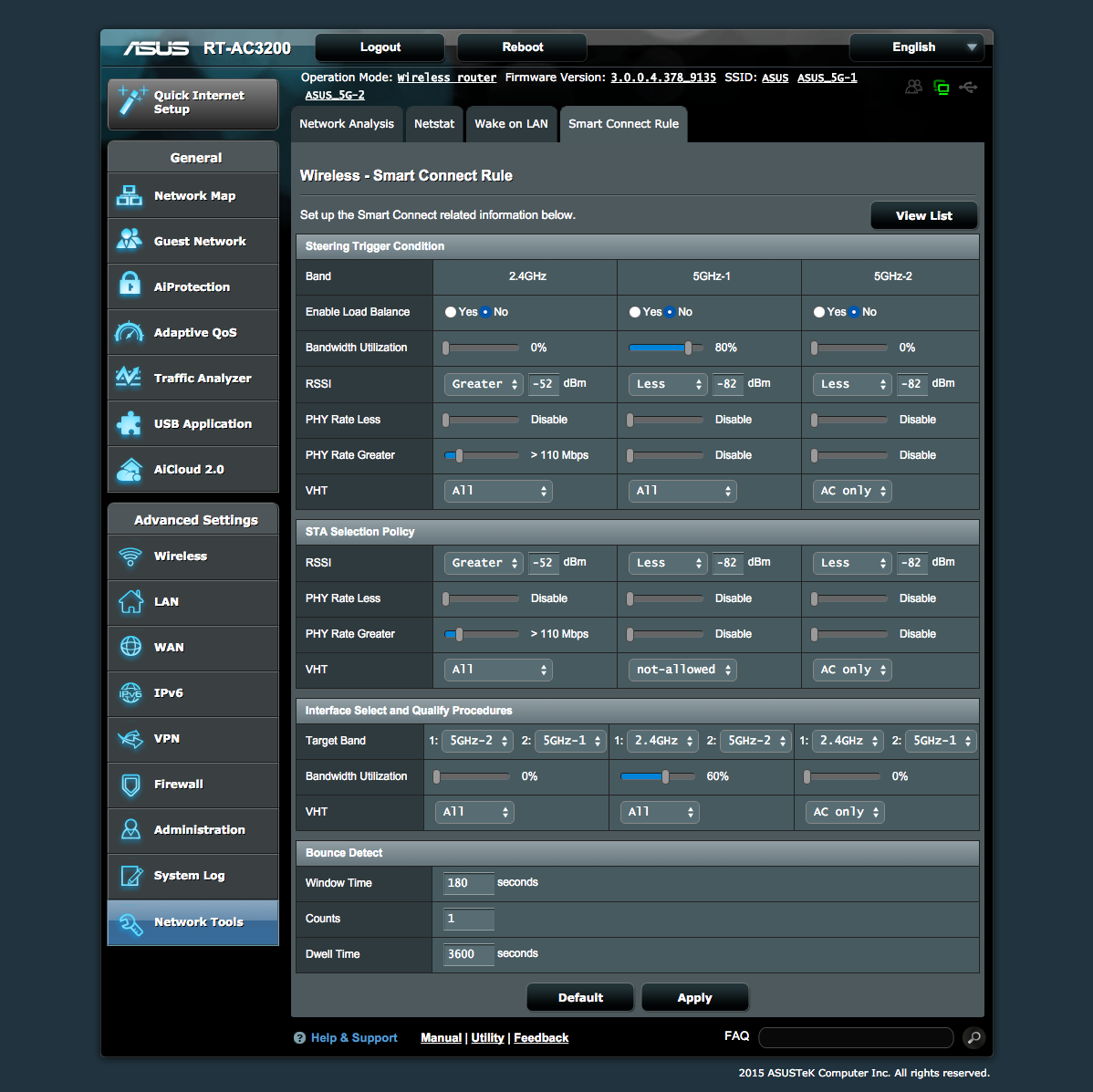 Can you share your smart connect configuration for ASUS RT-AC3200. Thanks